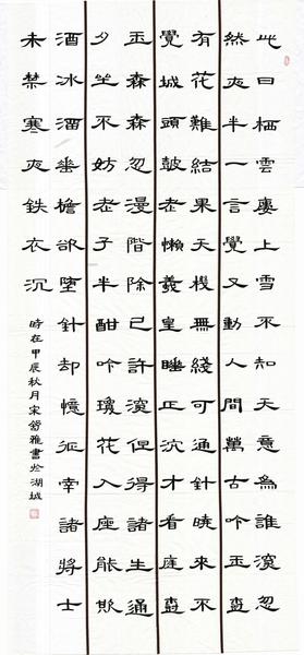 我学习隶书已经一年了,为了更好地参加这次比赛,我认真学习了王阳明先生的诗文名篇,深入理解其中的精神内涵,并将这些感悟融入到我的书法创作中。我希望通过我的作品,能够表达出对王阳明先生的敬意,同时也能够展现出我对书法艺术的热爱和追求。 在日常生活中,我始终保持着对书法的热爱和坚持,不断地进行练习和创作。我相信,书法不仅是一种艺术形式,更是一种修身养性的方式。通过书法的练习,我能够不断地提高自己的审美水平和文化素养,同时也能够培养自己的耐心和毅力。我非常珍惜这次参加王阳明软笔书法比赛的机会,我以认真的态度和饱满的热情,全力以赴地投入到比赛中。