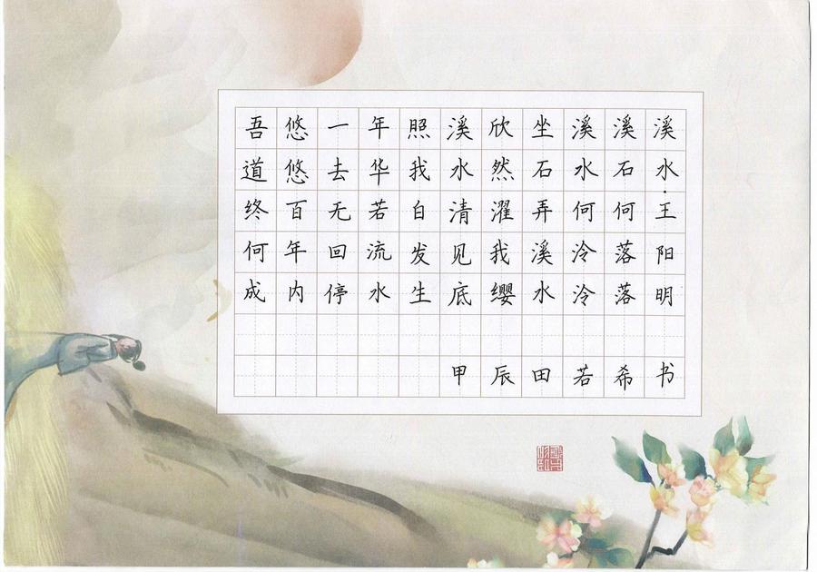 这次是我第一次参加书法比赛,虽然刚上三年级的我,没有专门学习过书法,但我相信这次参赛,是一个美好的开始。老师曾对我说:“你有对书法的热爱,不过在书法的道路上,只有矢志不渝地追求,才能抵达理想的彼岸,你要坚持下去。”老师的鼓励和期望,也成了我书法之路的永恒动力,未来我会更加刻苦训练的,坚持写出一手更好的硬笔字。