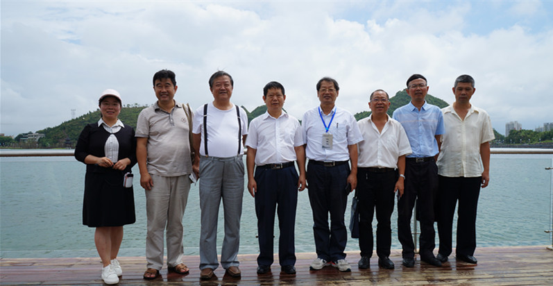 中国明史学会会长陈支平(左三)、中国明史学会首席顾问毛佩琦(左五)与陶文彩副书记等在娄湖湿地公园合影