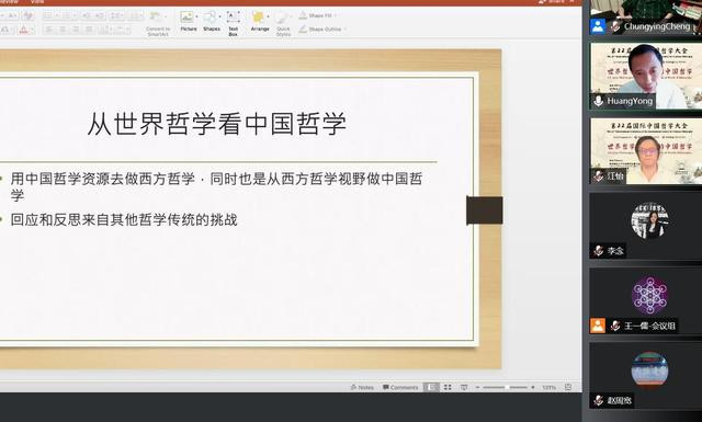 27日下午第一场特邀会议“中国哲学如何走向世界”专题中,香港中文大学黄勇教授演讲中谈到,从世界哲学来看中国哲学,是比较哲学不可缺少的环节