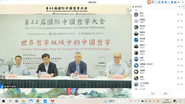 陈来(右侧名单第一个)作为嘉宾出席线上开幕式