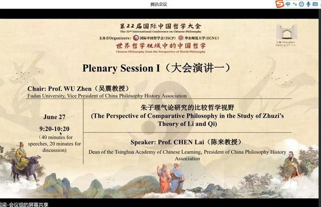 陈来主讲40分钟,讨论20分钟。大会共安排了五天九场重量级的大会演讲