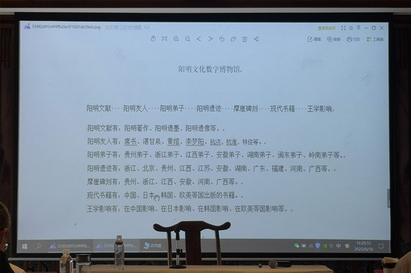 2022年8月18日,由贵州省儒学研究会指导、修文阳明文献研究中心主办的纪念王阳明先生诞辰550周年暨龙场悟道515周年“阳明文化遗产保护研究与开发利用学术研讨会”在贵阳市修文县中国阳明文化园龙冈书院举行。来自贵州、浙江、江西、安徽、福建等阳明故里、阳明文化遗产地的近50名阳明研究专家汇聚一堂,通过实地参观、话题讨论、学术交流、观点分享等形式,围绕阳明文化遗迹保护利用、阳明古籍整理研究、阳明文化传承弘扬等展开讨论,纪念阳明先生诞辰及龙场悟道。