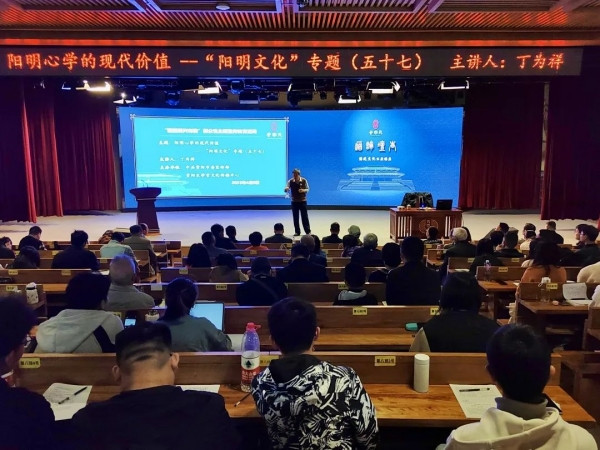两个小时的讲座,丁为祥教授全程站立,以宏阔的视野和鲜明的现实关照视角,对阳明心学的发展脉络进行了深度梳理,对程朱理学与阳明心学的关系进行了重新审视,对阳明心学在当前社会公民道德建设、个体生命成长、行业专业发展中的积极意义进行了全面阐发。其讲解深入浅出、旁征博引,呼应了“阳明心学当代价值”这一主题。