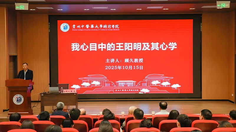 10月15日晚,贵州中医药大学时珍学院在崇文楼学术报告厅成功举办“我心目中的王阳明心学及其当代价值”主题讲座。学校党委副书记、纪委书记戴德铸,修文县政协副主席、龙场王阳明研究会会长李小龙,修文县小箐镇党委书记宋安辉等嘉宾出席活动。马克思主义学院教师代表、阳明学社指导老师、阳明学社全体成员及各学部(院)学生代表共计近300人参加。本次讲座特邀著名历史学家、教育家、社会活动家、贵州师范大学顾久教授担任主讲。讲座由学校阳明文化转化运用育人中心主任陈龙斌主持。