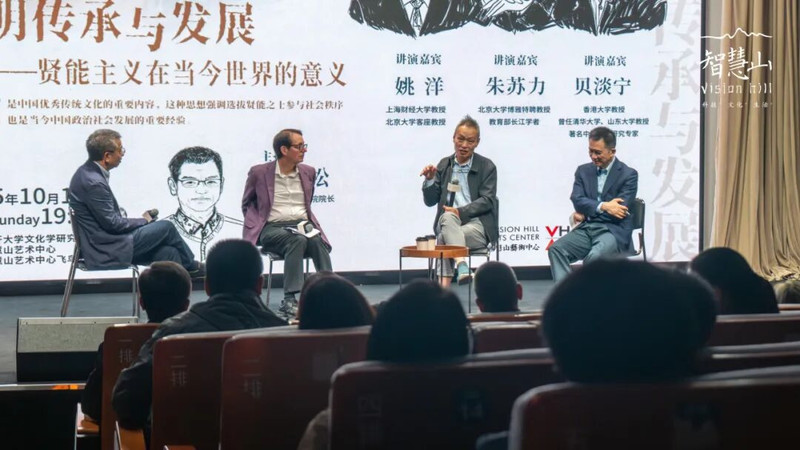活动伊始,智慧山负责人张伟力先生发表开场致辞。本次讲座由南开大学哲学院院长干春松教授担纲主持,并荣幸地邀请到上海财经大学教授、北京大学客座教授姚洋,北京大学博雅特聘教授、教育部长江学者朱苏力,以及香港大学教授、著名中国问题研究专家贝淡宁三位重量级学者,分别从经济学、法学与政治学的多元视角,深入解析了贤能政治的起源、实践与当代价值。