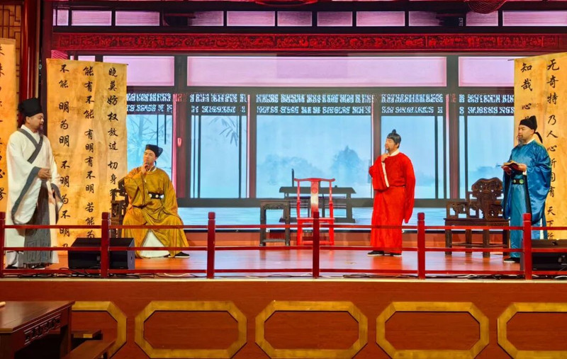 夜幕下的金溪县历史文化街区灯火璀璨,一场兼具文化体验与学术感知的探访活动徐徐展开。参会学者们首先观看了“鹅湖之辩”舞台剧,剧中以艺术化的形式再现了陆九渊与朱熹围绕“为学之方”展开的学术论争,直观呈现了心学思想与程朱理学的差异与交融,为学者们研究心学思想的形成背景提供了鲜活的历史参照。随后,大家漫步于古色古香的街区,依次参观思明博物馆、非遗博物馆与仰山书院。在思明博物馆,馆藏的陆九渊心学资料,为学者们考证心学思想的传承脉络提供了依据;非遗博物馆内,金溪雕版印刷手工技艺所蕴含的“匠心精神”,与心学“知行合一”的理念形成跨时空呼应,引发学者们对“传统文化实践品格”的深度思考;仰山书院作为陆九渊曾讲学的场所,其留存的相关遗址,让学者们得以沉浸式感受心学教育理念的实践场景。“非常感谢南昌大学以及抚州市金溪县召开这次学术盛会,不仅为海内外心学研究者搭建了高水平的学术交流平台,更让我们得以在陆九渊先生的故里,沉浸式感受心学发源地的文脉底蕴。”中国人民大学刘增光教授表示。