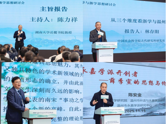 2025年11月14至16日,由中国社会科学院中国思想史研究中心、温州市温州学研究联合会、温州大学共同主办的“中国古代思想的地域性传统——新时代温州学与浙学思想研讨会”在温州召开。本次会议由中国社会科学院登峰战略优势学科“隋唐宋元史”、温州大学马克思主义学院、温州大学温州学研究院承办。来自中国社会科学院、清华大学、湖南大学、浙江工商大学、杭州师范大学、贵州师范大学、温州医科大学、温州大学等高校与研究机构的40余位专家学者参与了本次研讨会。